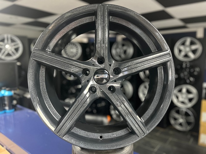 gebruikte set velgen 19 inch 5x120 met NIEUWE POEDERCOAT (BMW kappen passen)